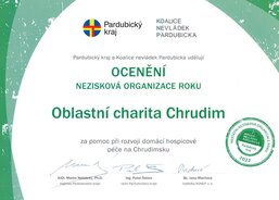 Oblastní charita Chrudim byla spolu s dalšími dvěma neziskovými organizacemi oceněna jako nezisková organizace roku, především za pomoc při rozvoji domácí hospicové péče na Chrudimsku.